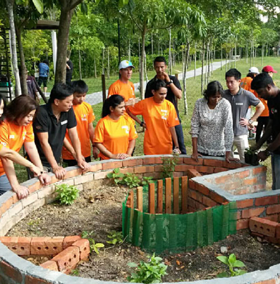 Initiated in June 2013, E&O’s Think Green community education programme aims to build eco-centric communities and strengthen the civic spirit through a community food garden. Incorporating a composting site, the Think Green food garden at Straits Green—a 4-acre public park created by E&O at its masterplanned Seri Tanjung Pinang residential enclave in Penang—serves as an outdoor classroom for local communities, partners and employees to come together proactively and embrace volunteerism, earth care practices and community building.